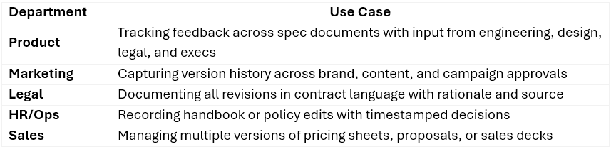 Collaborating on a high-stakes deliverable across multiple functions can quickly spiral into chaos. Comments get lost in Slack. Redlines disappear in email threads. A decision made during a live meeting never gets documented. By the time you’re preparing the “final” version, no one can remember who asked for what — or if it was already addressed.